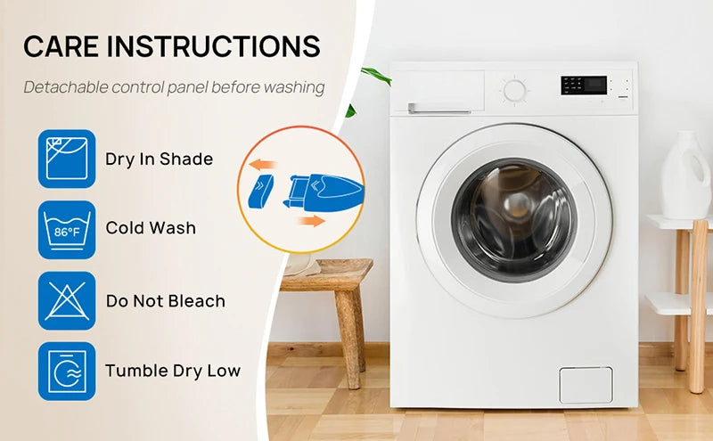 【ENERGY SAVING】: heated blanket use the intelligent temperature adjustment technology. When the temperature rises, the heated blanket will automatically adjust the temperature according to the surrounding environment, which can always provide users with a comfortable feeling and is conducive to energy saving. Compared with air conditioner, using heated blanket is more energy efficient, and you can save more heating costs in winter.